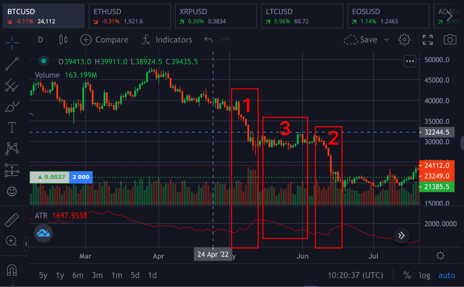 Higher timeframe - 1H chart to 1D chart